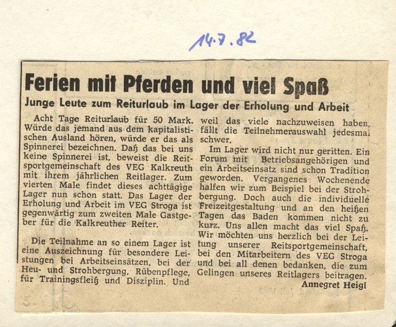 1982-Presse - Chronik Reit- und Fahrverein Kalkreuth e.V.